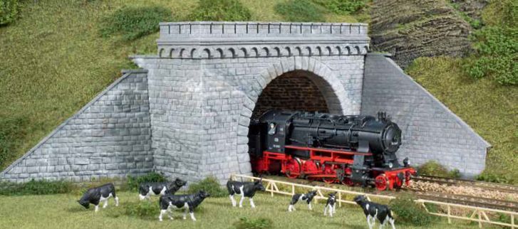 Mit Mauerkrone und 4 Flügelmauern, meliert. Nicht für Oberleitungsbetrieb geeignet. Verwendbar bei gerader Gleisführung im Durchfahrtsbereich.