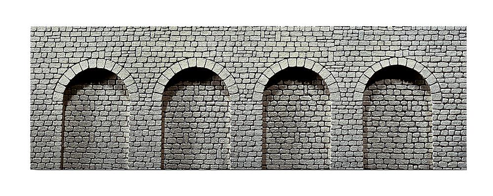 Dekorplatte Arkaden, Naturstein-Quader, grau, mit Rundbogen.
