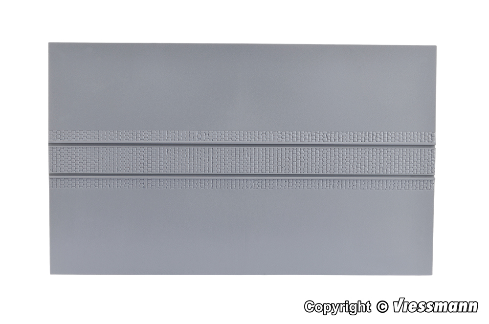 Überall wo Schiene und Straße ein gleiches Niveau fordern, kann die Platte eingesetzt werden, z.B. Fabrikhöfe, Hafenanlagen etc.. Wie bei dem Vorbild liegen auch im Modell die Gleise in einer Pflastersteinbettung. Diese Platte kann mit der Schere beschnitten werden.