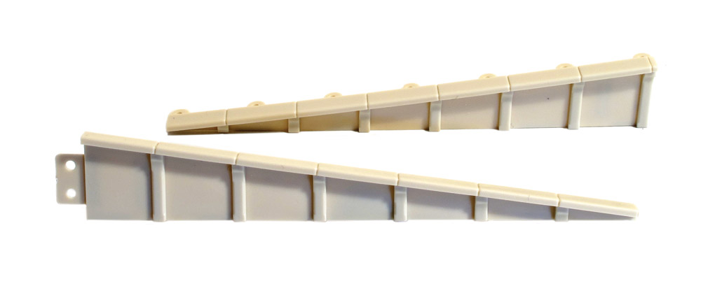 Detaillierte, spritzgegossene Kunststoffabschnitte für die Einfassung von Plattformrampen; diese Einheiten können auf Wunsch gebogen werden. Verwendung mit Wills SSMP221 Victoria Stone Paving oder anderem Oberflächenmaterial, das auf die gewünschte Plattformform zugeschnitten ist.