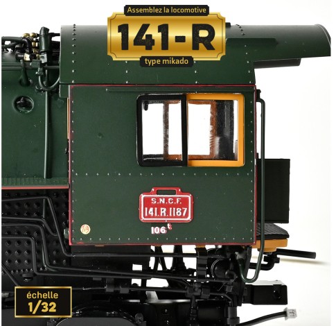 Die Dampf-Lokomotive 141-R ist eine originalgetreue Nachbildung einer der bekanntesten Dampflokomotiven des französischen SNCF-Eisenbahnnetzes. Viele liebevoll und originalgetreu wiedergegebene Details wie z. Beispiel der Achsfolge 1'D1' auch Mikado genannt, der Führerstand, der Tender wurden detailgetreu wiedergegeben. Zwischen den Jahren 1945 und 1974 waren etwas mehr als 1.300 Lokomotiven im französischen Schienennetz im Einsatz. Dieser Bausatz aus Metall und Kunststoff besticht durch eine hochwertige Verarbeitung mit Beleuchtung, Soundeffekten und beweglichen Teilen.