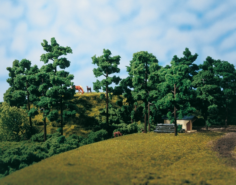 Mit wenig Aufwand kann man naturgetreue Kiefern selbst gestalten. Durch Drehen des Fußes ist es möglich, die Bäume auch an Steilhängen senkrecht aufzustellen.