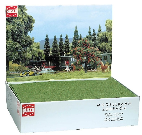 Für den Wildgras-Geländeteppich werden besonders lange »Grashalme« verwendet. Dadurch ergibt sich im H0-Maßstab ein »kniehoher« Bewuchs. Durch zusätzliches Aufbringen von Busch Micro-Flocken oder Besprühen mit Busch Geländebau-Spray lassen sich herrliche Unkrautwiesen, Blumenfelder oder Weiden erstellen. Kleinere (gerissene) Flecken oder Streifen bringen natürliche Wildwuchseffekte.
