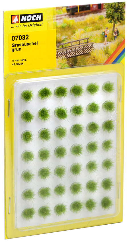 Mit den beliebten Grasbüscheln von NOCH können Feldwege, See- und Flussufer, Bahndämme und Böschungen sowie Wald- und Straßenränder perfekt ausdekoriert werden.