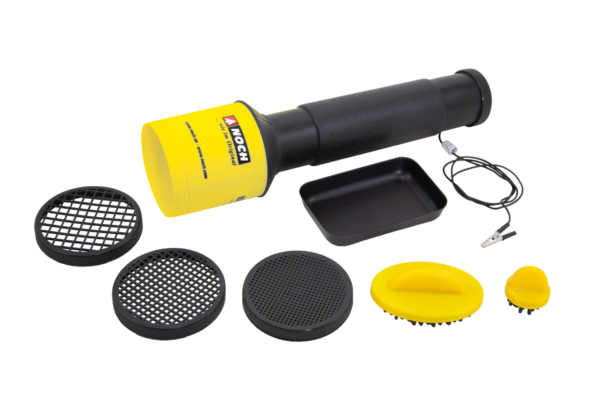 Der NOCH Gras-Master 3.0 PROFI wurde für höchste Ansprüche von Modellbau-Profis entwickelt. Eine Leistung von bis zu 16kV lädt die Grasfasern elektrostatisch auf. Je nach Länge der Gräser kommt eines der drei enthaltenen Siebe (fein, mittel oder grob) zum Einsatz.