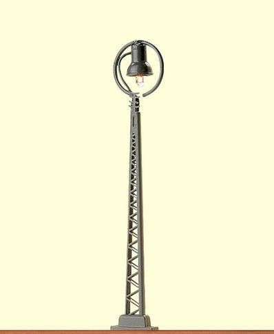 Gittermastleuchte mit Ring. Höhe 75 mm, tragende Teile aus Messing, filigrane Ätzteile, aufwändige Lackierung in Handarbeit, mehrteiliges Lampengehäuse