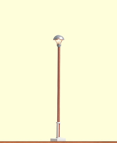 Bahnsteig Pilzleuchte. Höhe 100 mm, tragende Teile aus Messing, filigrane Ätzteile, mehrteiliger Lampenkopf, aufwändige Lackierung in Handarbeit
