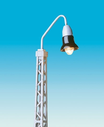 Aufsteckleuchte für Oberleitungsmast. Tragende Teile aus Messing, filigrane Ätzteile, mehrteiliger Lampenkopf, aufwändige Lackierung in Handarbeit