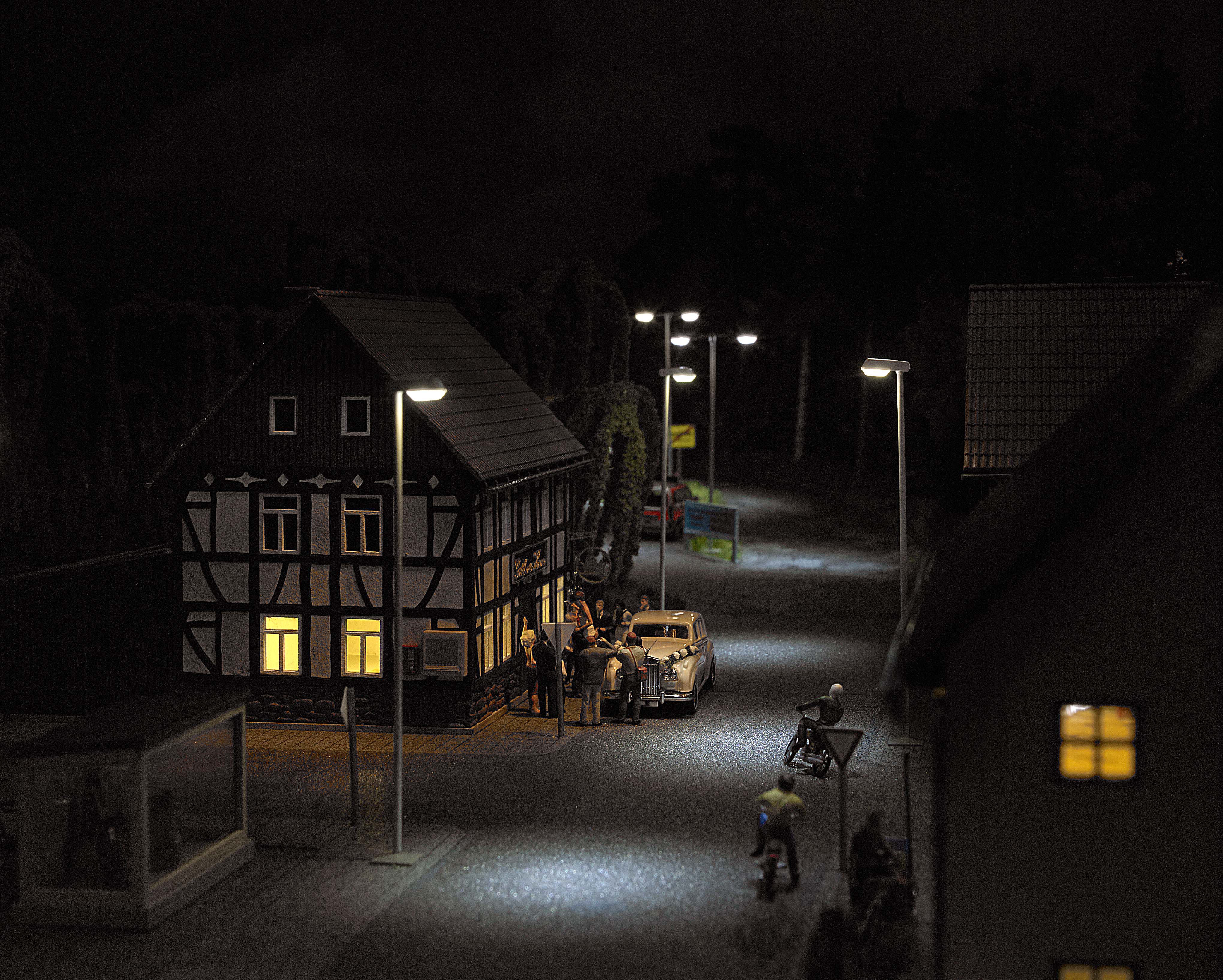 Realistische Nachbildung des weißen Lichtes, das im Original durch Quecksilberdampflampen erzeugt wird, durch weiße Neon-LED. Fertigmodell. Höhe: ca. 82 mm.