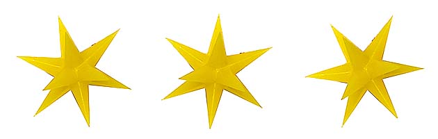 3 gelb beleuchtente Sterne. In jedem Stern sind 2 Leuchtdioden eingebaut, die wartungsfreien Dauerbetrieb ermöglichen. Anschlussfertig für 14-16 V, Gleich oder Wechselspannung. Jetzt kann der Winter beginnen.