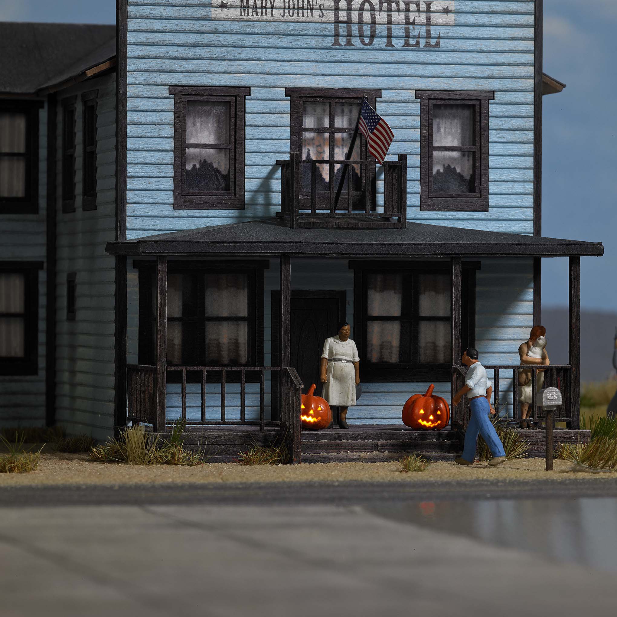 Typischer Leucht-Kürbis mit dreieckigen Augen, Nase und Zähnen. Perfekt für die Ausgestaltung von Gruselszenen, Halloween usw. Fertigmodell. Zum Anschluss an 14 - 16 V Gleich- oder Wechselspannung.