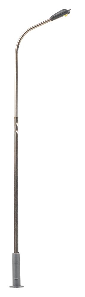 Moderne und weitverbreitete Peitschenleuchte. Besonders geeignet zur Ausgestaltung von Stadt-, Straßen- und Industrieszenerien. Der Mast ist aus Metall gefertigt und die Leuchtenhöhe variabel einstellbar. Die filigrane einflammige Leuchte ist mit langlebiger LED-Technik ausgestattet. Höhe: 95 mm.