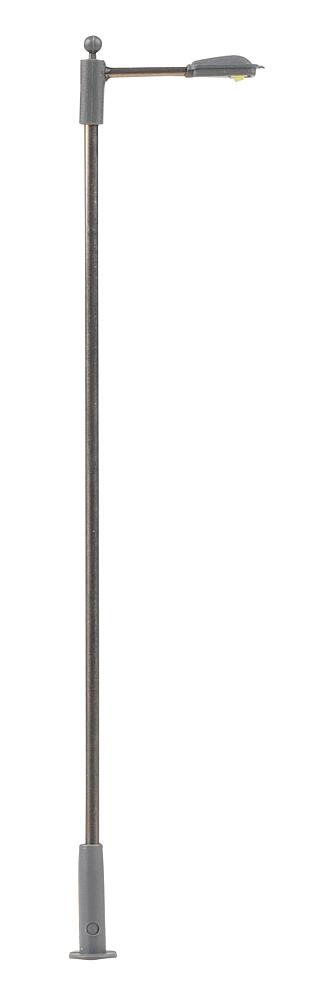 Moderne, einflammige Ansatzleuchte. Besonders geeignet zur Ausgestaltung von Stadt-, Straßen- und Industrieszenerien. Der Mast ist aus Metall gefertigt und die Leuchtenhöhe variabel einstellbar. Ausgestattet mit langlebiger LED-Technik. Höhe: 93 mm.