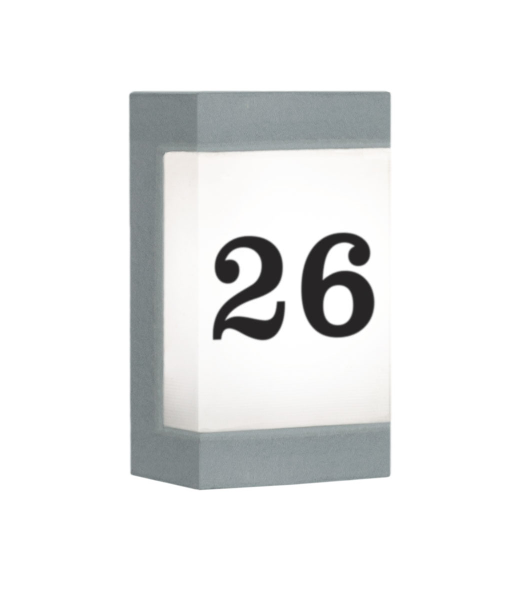 H0 Hausnummer mit LED-Beleuchtung - Mit beigelegtem Klebeettiket kann die Hausnummer frei gewählt werden, passt pefekt zu den Kibri Kubushäusern Art. 38335 – 38339. Wartungsfrei dank LED-Beleuchtung. L 0,21 x B 0,35 x H 0,6 cm