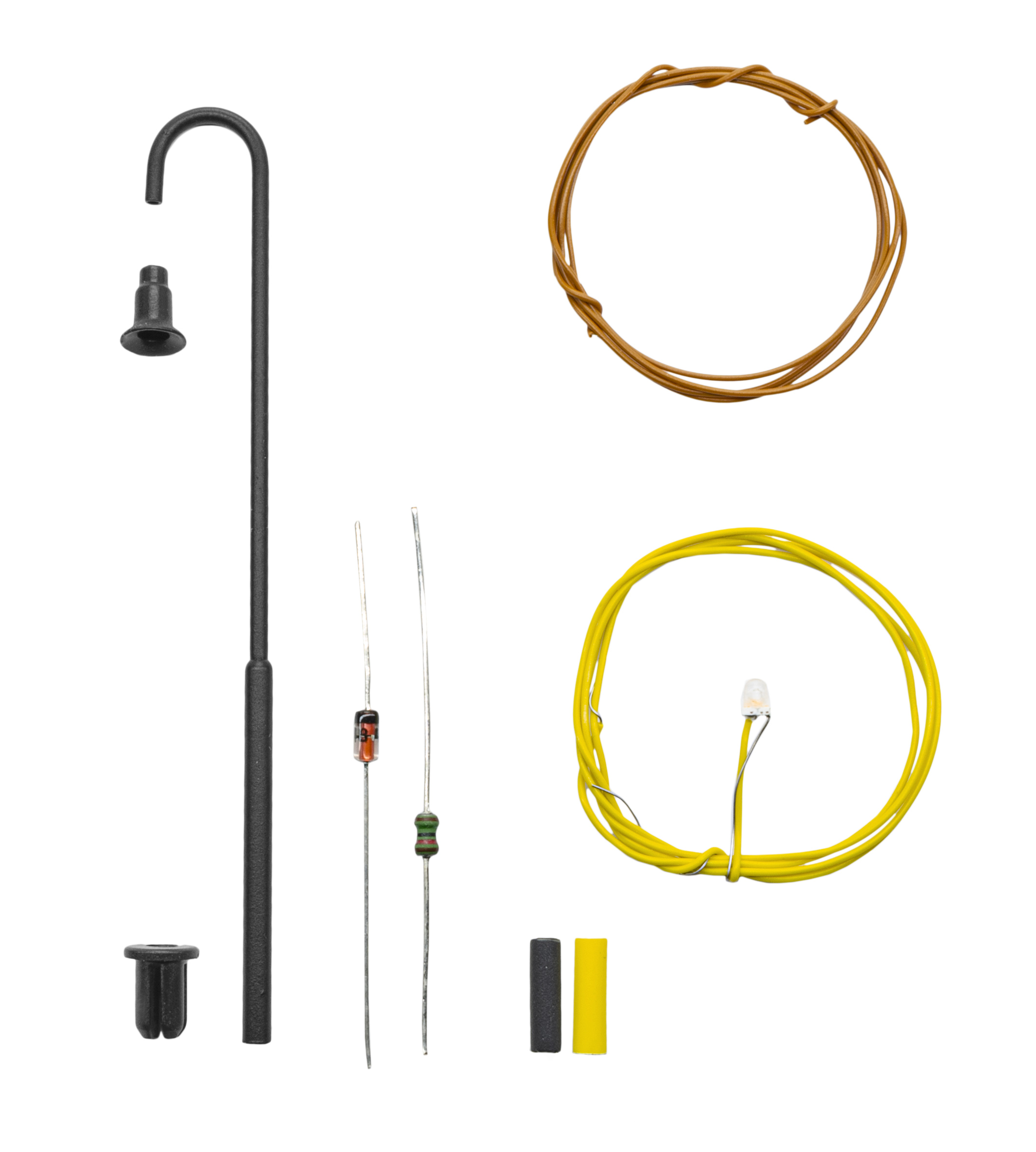 Komplettbausatz. Vorbildgetreuer Messingmast mit Patentsteckfuß für eine besonders einfache Montage. Zusammenbau ohne Löten und Werkzeug. Wartungsfrei dank LED-Beleuchtung. Höhe: 6,3 cm.