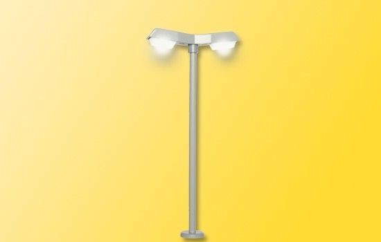 Moderne Straßenleuchte der Epochen IV ? VI. Vorbildgetreuer Messingmast mit Patentsteckfuß für eine besonders einfache Montage. Höhe: 8 cm.