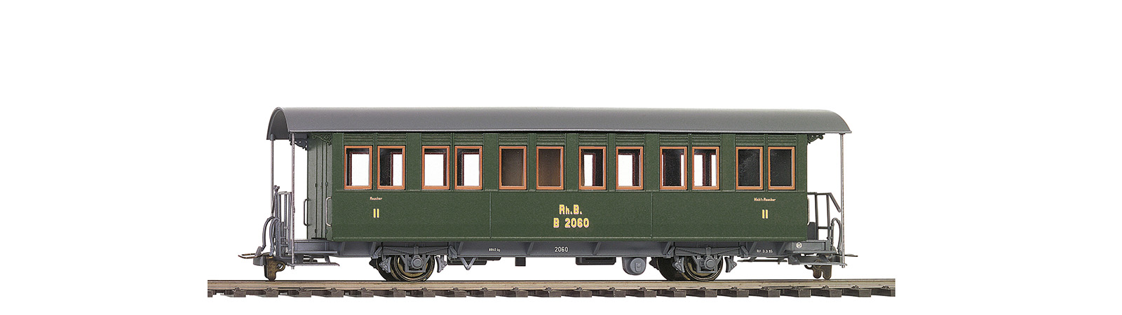 Bis 1910 konnte man auf dem Bündner Meterspurnetz ausschließlich zweiachsige Personenwagen beobachten. Durch den fortschreitenden Schienenstrang mußte die RhB mehrmals neues Rollmaterial bestellen. Als eine der letzten Zweiachser-Wagenserien beschaffte man 1906 bzw. 1908 die C 256 - 268 bei der Waggonfabrik Rastatt. Einige der Fahrzeuge mit 5,5 m Achsstand sind heute noch als Bauzugwagen bzw. bei der Öchsle Museumsbahn vorhanden. Die RhB setzt den B 2060 in ihrem historischen Dampfzug ein.