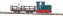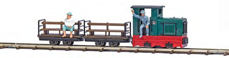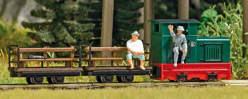Mit Feldbahndiesellokomotive Gmeinder 15/18 in geschlossener Ausführung und 2 Mannschaftswagen. Mit Lokführer und Fahrgast.