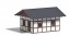 Bahnwärterhaus in Fachwerkbauweise mit Holzgiebeln. Alle Teile dieses Echtholzbausatzes sind bereits koloriert.