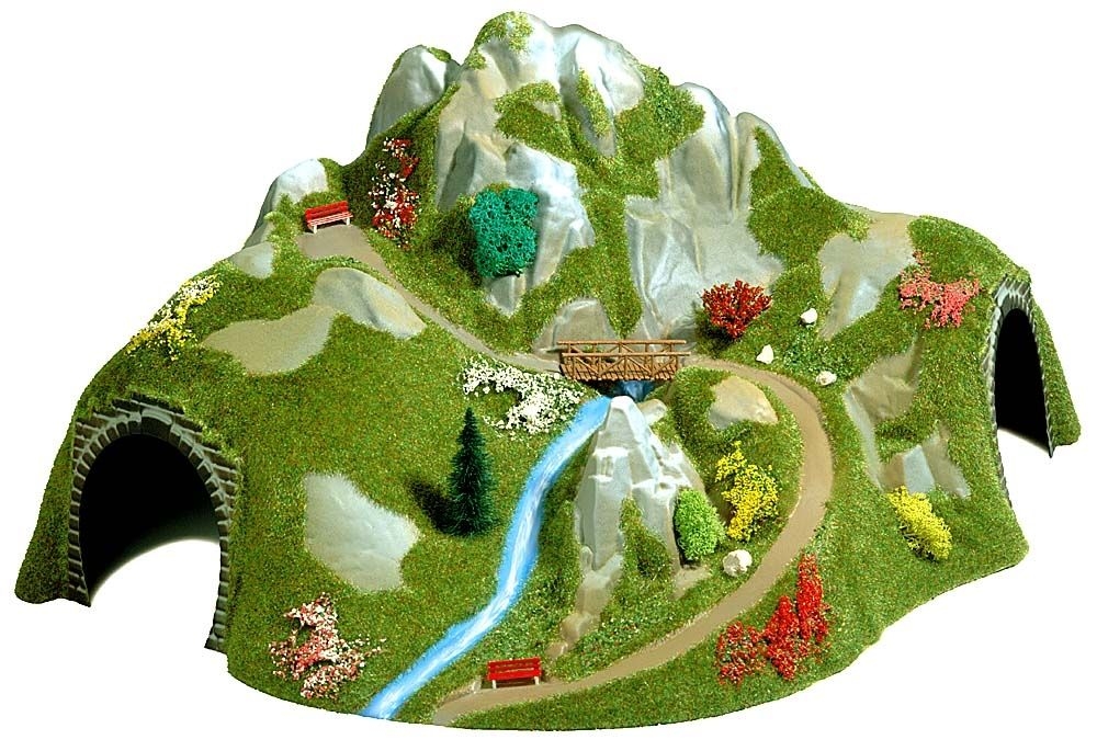 Mit Wasserfall und Holzbrücke. Ein Prunkstück für jede Modellanlage. Für gebogene Strecken.