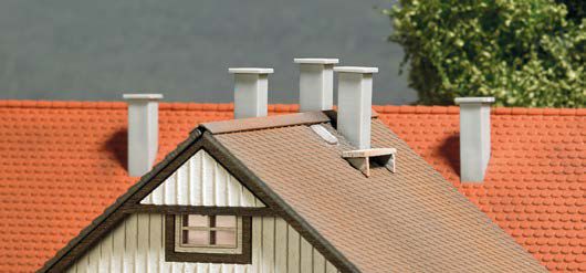 6 Schornsteine mit schrägem Sockel (45o) zur Befestigung auf Giebeldächern. 13/17 mm.