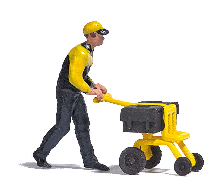 Briefträger mit Zustellwagen