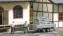 2 Fensterbauer, die ine Glasscheibe tragen, sowie ein Autoanhänger mit Gestell zum sicheren Glasscheibentransport.