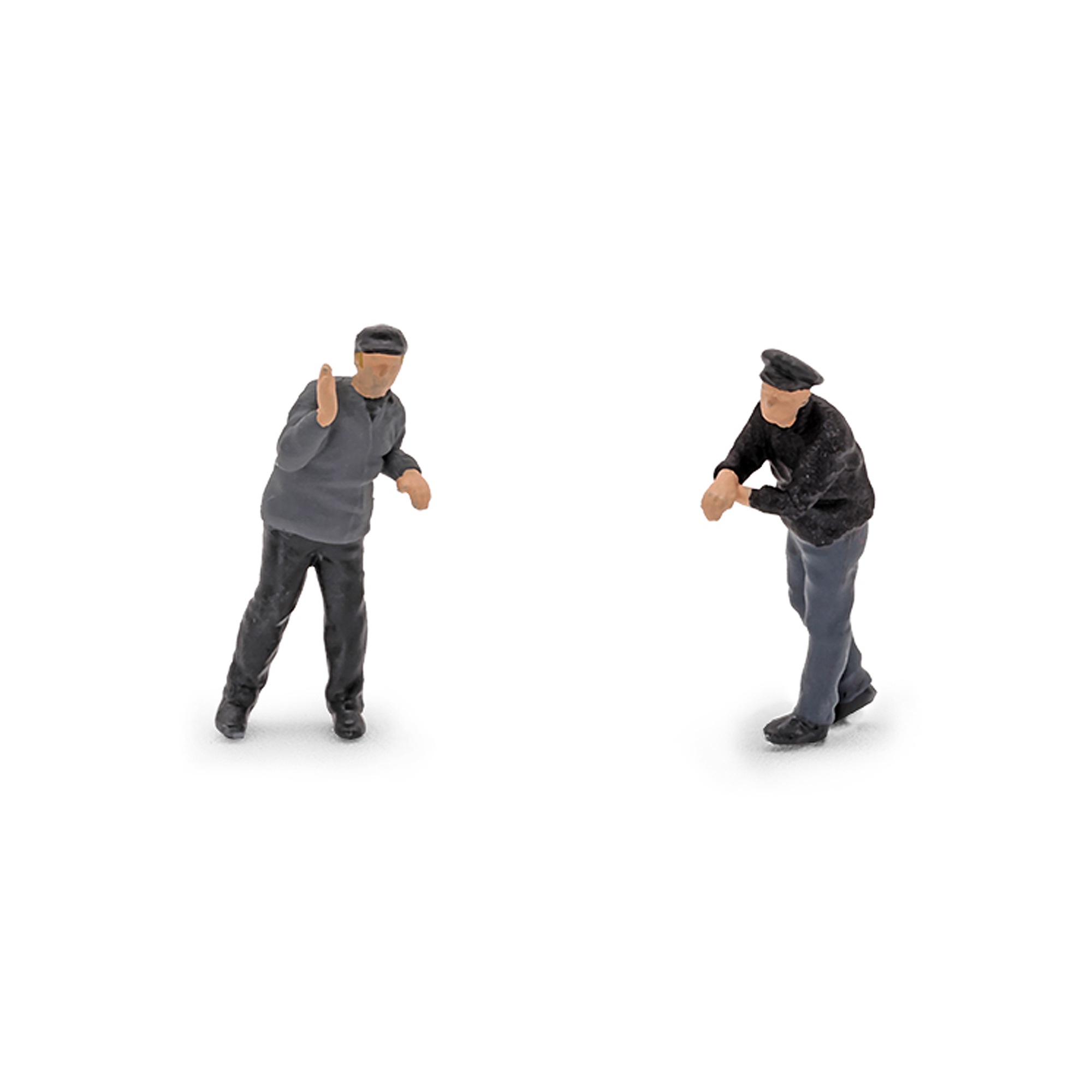 Zwei stehende Figuren »Lokführer und »Heizera in ty-pischer Arbeitsposition in der Dampflok Figuren bereits