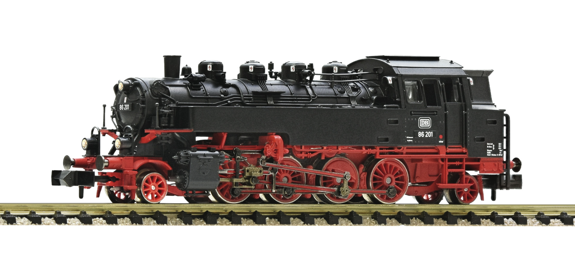 Dampflokomotive 86 201 der Deutschen Bundesbahn. - Next18-Sounddecoder und beidseitiges LED-Spitzenlicht - Mit vorbildgerechten Soundfunktionen - Feine Vor- und Nachlaufräder mit durchbrochenen Speichen - Metalldruckguss-Fahrgestell Nach dem Ende des 2. Weltkrieges befanden sich 386 Maschinen der Baureihe 86 auf Westdeutschem Gebiet. Die meisten ließen sich instand setzen, sodass die DB 1952 über 378 Loks dieser Baureihe verfügte. Zum Aufgabenbereich gehörten neben den klassischen Nebenbahnzügen auch regelmäßig die Beförderung von Eilzügen sowie das Rangieren in Güterbahnhöfen.