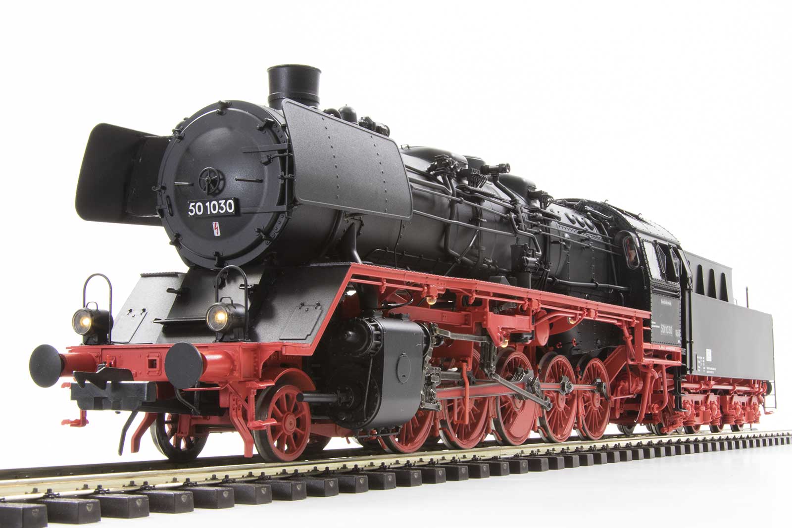 BR 50 1030 mit Altbaukessel, dreidomig, Schürze, Kastentender DR, Epoche 3