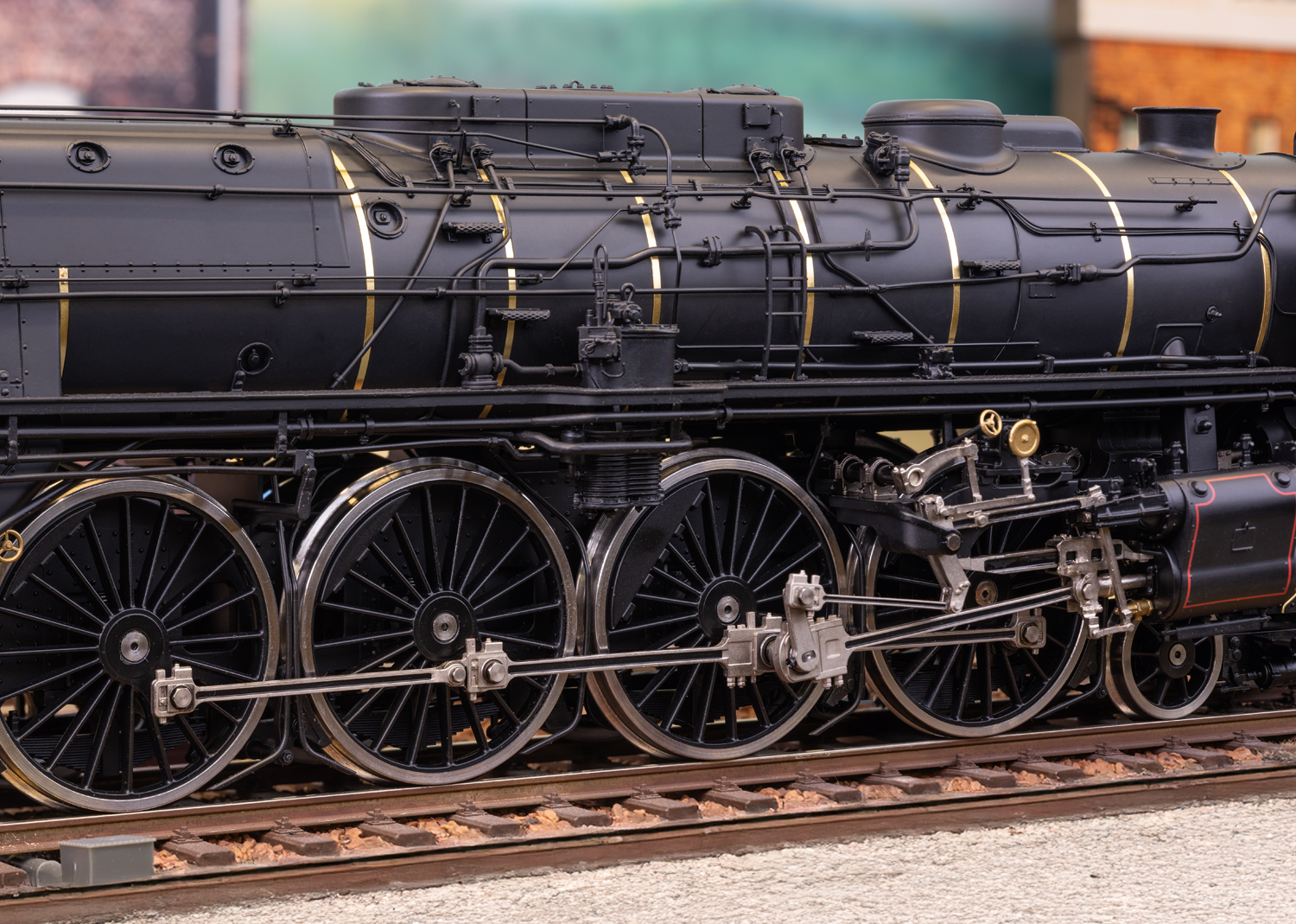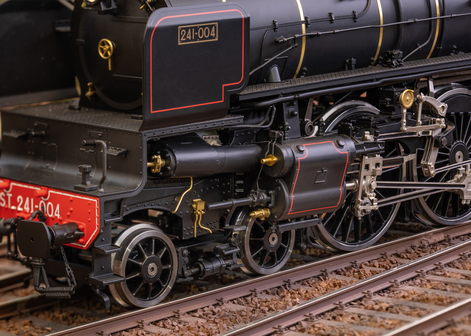Vorbild: Schwere Schnellzug-Dampflokomotive mit Schlepptender Serie 13 (241-A) der Französischen Ostbahn (EST). Schwarze Grundfarbgebung mit schwarzem Fahrwerk. Ausführung als Lokomotive für das Schnellzugwagen-Set EDELWEISS. Typspezifische Änderung der Windleitbleche, 2-Licht-Spitzensignal mit Petroleum-Lampen, mit einer Lampe oben und einer Lampe unten und vielem mehr. Lok-Betriebsnummer EST 241-004. Betriebszustand um 1931
