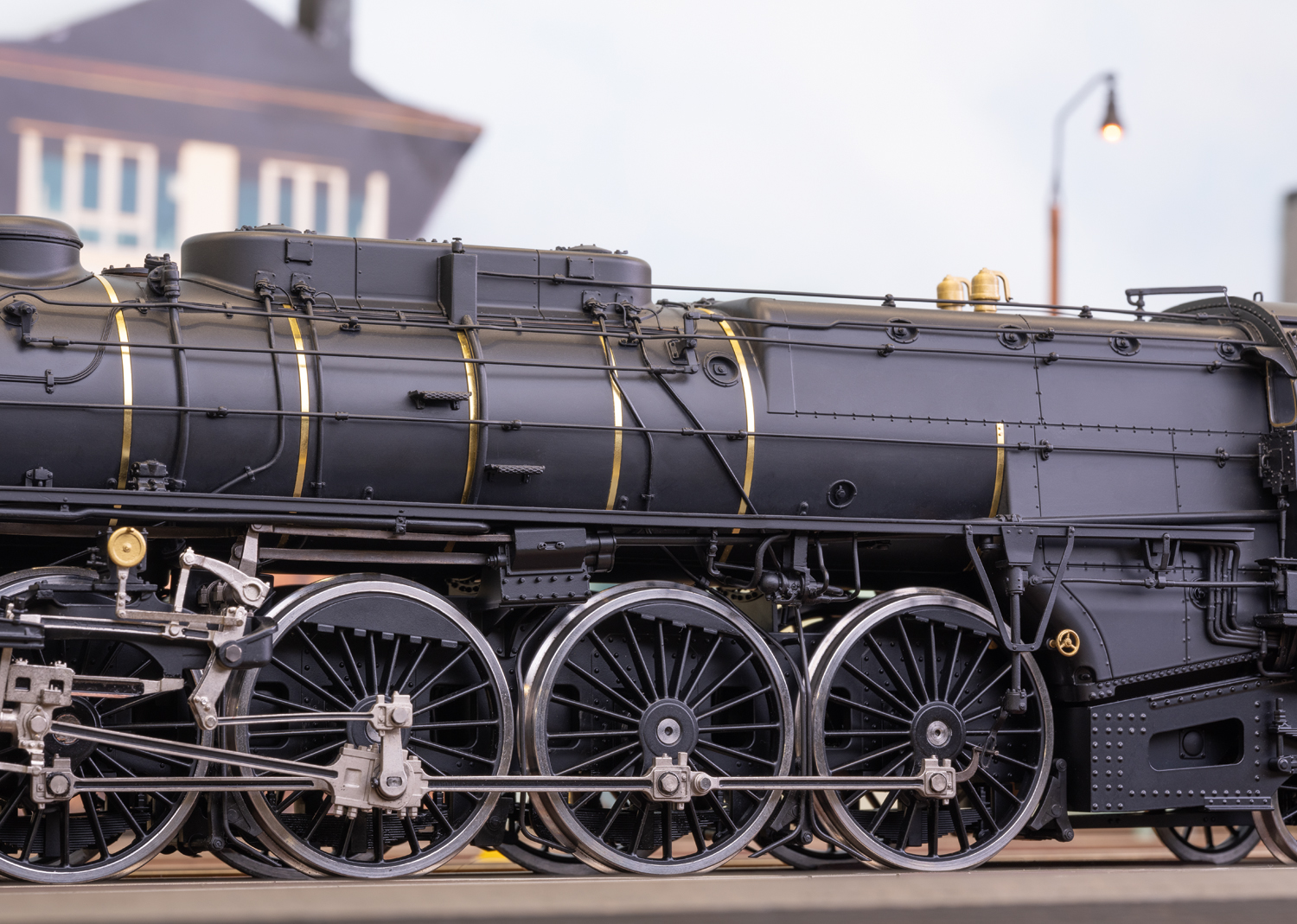 Modell: Gefertigt aus Metall. Fahrgestell, Lokaufbau mit Kessel und Führerhaus aus Zinkdruckguss. Sonstige Ansetzteile weitestgehend aus Metall (MS). Hochdetailliertes, vorbildgerechtes Modell mit vielen angesetzten Details und höchstdetailliertem Führerstand. Sanddeckel zum Öffnen und Rauchkammertür mit Zentralverschluss ebenfalls zum Öffnen. Bewegliche Führerstandstüren, u.v.m. Mit mfx-Digital-Decoder mit 32 Funktionen, geregeltem Hochleistungsantrieb und Geräuschgenerator mit radsynchronem Fahrgeräusch sowie umfangreichen Geräuschfunktionen. Betrieb mit Wechselstrom, Gleichstrom, Märklin Digital und DCC möglich. Eingebauter Pufferkondensator. Alle Treibachsen angetrieben. Eingebauter Rauchgenerator mit radsynchronem Dampfausstoß, mehrstufiger Zylinderdampf und Dampfpfeife. Zweilicht-Spitzensignal mit epochengerechter Lichtfärbung mit der Fahrtrichtung wechselnd. Stirnbeleuchtung konventionell in Betrieb, digital schaltbar. Beleuchtung mit wartungsfreien warmweißen LEDs. Rotes Rücklicht schaltbar. Führerstands- und Feuerbüchsenbeleuchtung (Flackern). Ausgerüstet mit Federpuffern, Lokmodell vorn mit Schraubenkupplung, hinten mit fernbedienbarer Telexkupplung ausgerüstet, (hinten gegen Schraubenkupplung tauschbar). Steuerungsumschaltung (Vor-, Rückwärts, Dauerbetrieb) in 3 Stufen. Zum Lieferumfang des Modells gehört ein Ausstattungspaket mit einer Schraubenkupplung, Dampföl sowie eine Lokführer- und Heizerfigur bzw. Handschuhen. Lieferzustand montiert auf einem schwarz lackierten Aluminiumsockel für die Vitrinenpräsentation. Befahrbarer Mindestradius 1.020 mm. Länge über Puffer 83,8 cm. Gewicht ca. 8,2 kg.