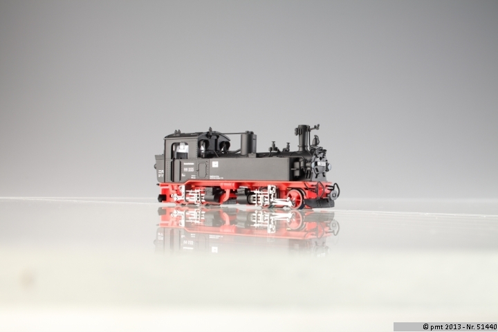 Reko-Lok IVK in schwarz der DRG (Faulhabermotor). Modelldetails: Zweileiter-Gleichstrom. Länge über Puffer: 106 mm. Trichterkupplung. Vorbild: Nach teilweise fünfzigjährigem Betriebseinsatz machten sich bei der IVK Anfang der 60er Jahre Verschleißerscheinungen bemerkbar, die den Austausch ganzer Baugruppen erforderten. Dabei handelt es sich nicht um eine Rekonstruktion der IVK, sondern um eine Generalreparatur bzw. Modernisierung. Das Vorbild unseres Modells erhielt einen neuen Kessel, Domverkleidungen und Ackermann-Sicherheitsventile und später ein Führerhausdach mit vier kleinen Lüftungsklappen. Das genietete Fahrwerk, ergänzt mit einer Körting-Saugluftbremsanlage, behielt die Lok bis zu ihrer Stilllegung.