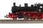 - DB Maschinen mit DRG-Lampen, Führerhaus mit abgerundetem Dach und Kohlekasten mit Klappen