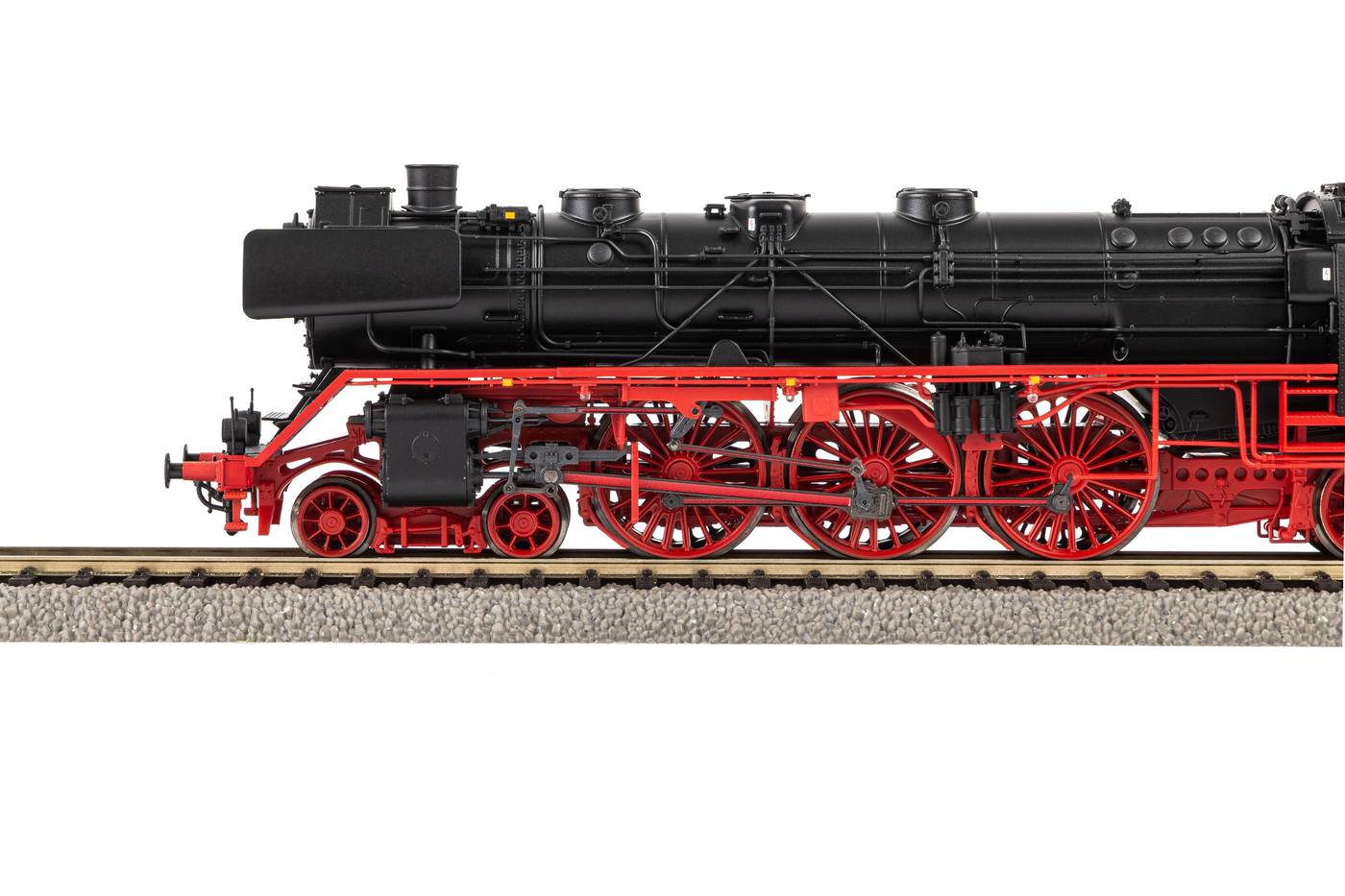 Digitale Schaltung von Führerstandbeleuchtung, Fahrwerksbeleuchtung und Feuerbüchsflackern durch Nachrüstung eines Digitaldecoders | Vorbereitet für die Nachrüstung eines Dampfgenerators | Vorbildgerechte Kesselnachbildung | Mischvorwärmanlage auf der Rauchkammer | luftige Barrenrahmen mit freiem Durchblick | filigranes Fahrwerk mit feinen Speichen | plastische Ausgleichsgewichte | passende Anbauteile | Zahlreiche angesetzte Kesselleitungen | Antrieb samt Schwungmasse