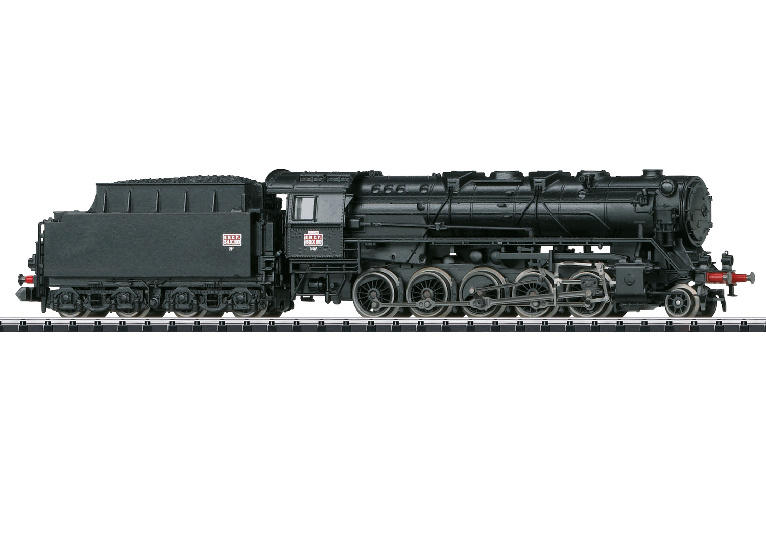 Schlepptender-Dampflokomotive Serie 150 X (Bauart 1´E h3 ) der Französischen Staatseisenbahn (SNCF). Im Zustand um 1950. Einsatz: Schwere Güterzüge.