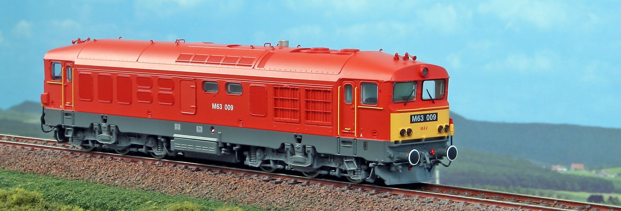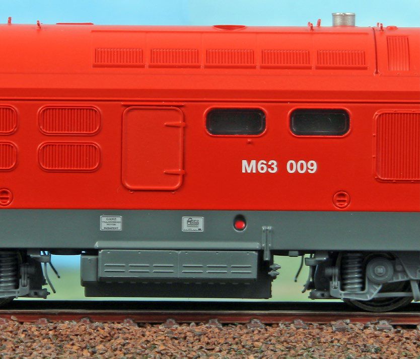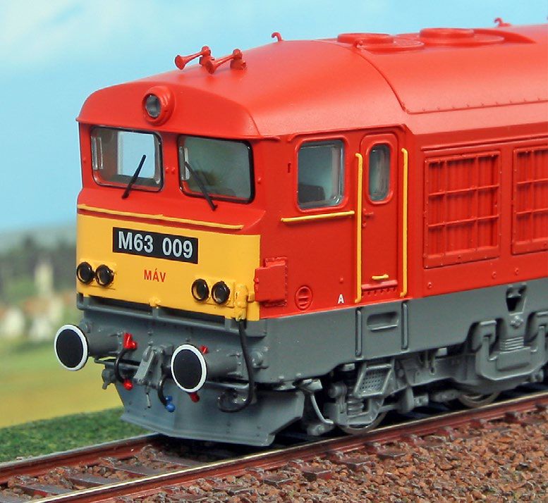 Diesellok Baureihe M63 der MAV, Epoche V, Betriebsnummer M63 009, rot/gelb, in der Endphase des Einsatzes