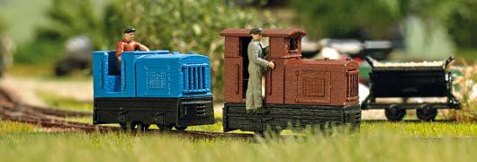 und Fahrer in stehender Position. Länge der Lokomotiven jeweils 19 mm.