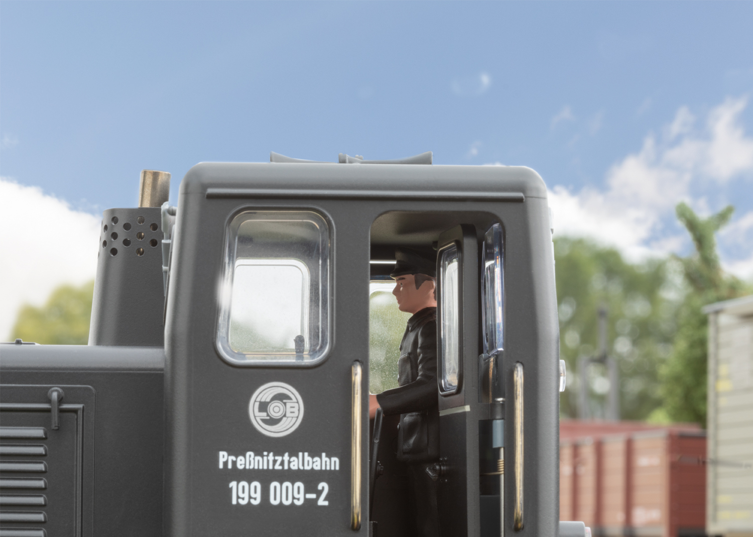 Press Diesellok V 10C - Von der kleinen Diesellok der Baureihe V 10C wurden vom damaligen Lokmotivbau Babelsberg rund 500 Stück gebaut, von denen noch ungefähr 100 Stück bei vielen Museumsbahnen im Einsatz sind. So auch bei der Pressnitztalbahn, bei der die Lok Nr. 199 009-2 im schwarzen Anstrich mit roten Rädern regelmäßig im Einsatz zu sehen ist.Modell der Dieselok 199 009-2 der Baureihe V 10C, wie sie heute noch bei der Pressnitztalbahn im Einsatz steht. Originalgetreue Farbgebung und Beschriftung der Epoche VI. Alle Radsätze mit einem leistungsstarken Bühler-Motor angetrieben, Haftreifen. Ausgerüstet mit einem mfx/DCC-Sounddecoder mit vielen Licht- und Soundfunktionen. Führerstandstüren zum Öffnen. Länge über Puffer 29 cm.