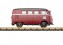 VW-Bus Draisine KLV 20 in der Epoche III der Deutschen Bundesbahn. In den 50er-Jahren wurden verschiedene VW T1 Modelle für den Schienenverkehr gebaut. Hier wurde auf die Technik der Serien T1 gesetzt und es wurden bei der Waggon- und Maschienenbau Donauwörth sowie bei der Michael Beilhack Maschinenfabrik verschiedene bahntechnische Umbauten vorgenommen. Dadurch ist z.B. das Lenkrad entfallen und es wurden an den Seiten Tritte angebaut. Das Modell ist ausgestattet mir einen mfx/DCC Decoder und hat verschiedene Licht- und Soundfunktionen. Spitzenbeleuchtung und Schlusslicht, sowie Innenbeleuchtung digital schaltbar. Zusätzlich ausgestattet mit einem Energiespeicher. Länge des Fahrzeugs ca. 19 cm.