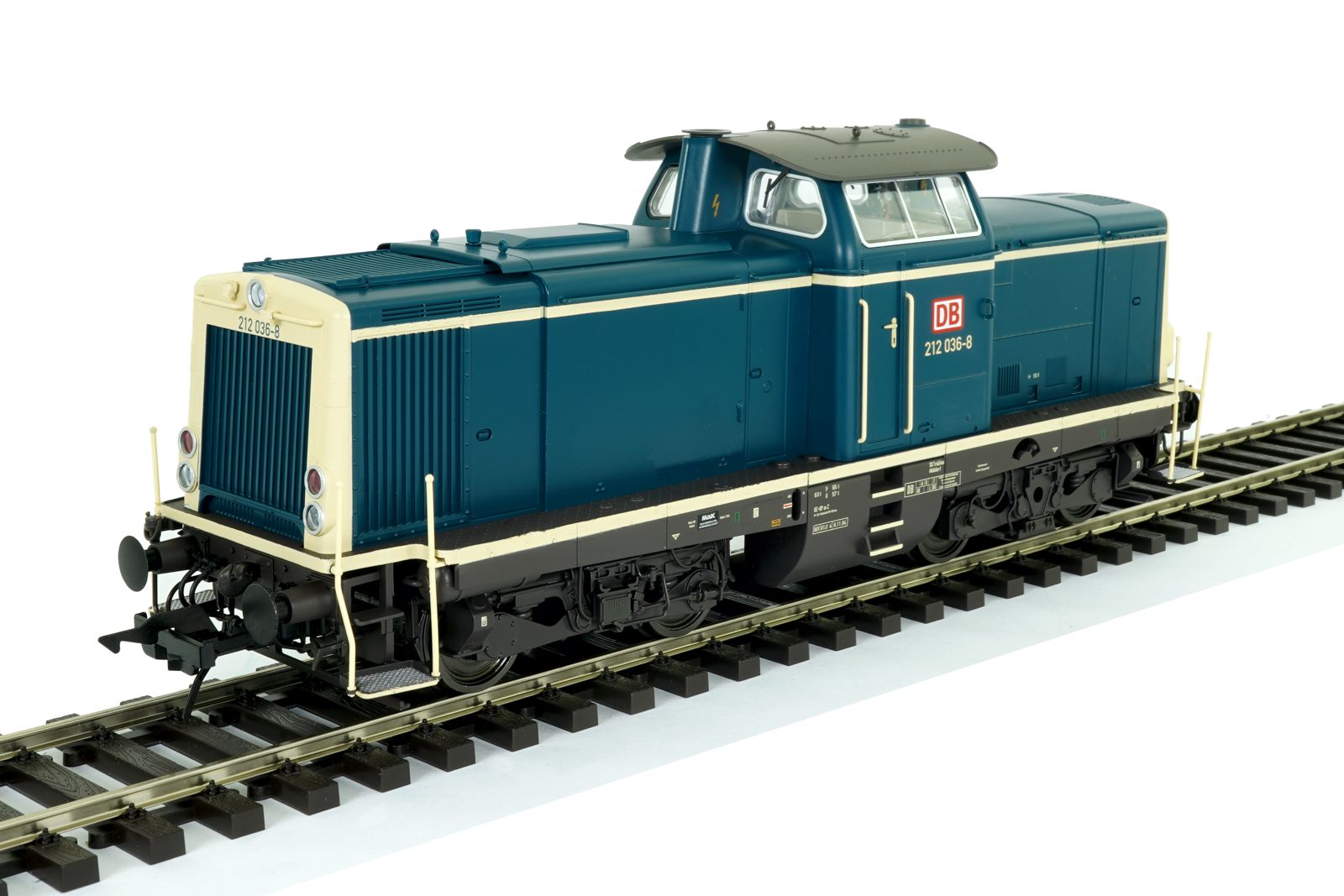 Diesellokomotive BR212 036-8, DB, Ep.5, ozeanblau/elfenbein, rotes DB-Logo, BD München Bw Mühldorf