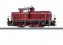 Diesellokomotive V 60 - Vorbild: Diesel-Rangierlokomotive Baureihe V 60 der Deutschen Bundesbahn (DB). Purpurrote Grundfarbgebung. Dieselhydraulischer Antrieb mit Blindwelle. Vorbauten und Führerhaus der Serienausführung. Führerhausdach in der Bauform der Loks bis ca. V 60 390. Führerhausdach mit Lüftungsklappen. Erste Form des Schalldämpfers. Dofa-Ofen mit Kohlefeuerung, Kohlebehälter am rechten Umlauf hinter dem Dofa-Ofen. Betriebsnummer V 60 334. Betriebszustand um 1960.Modell: Mit Digital-Decoder mfx+ und umfangreichen Geräuschfunktionen. Geregelter Hochleistungsantrieb. Eine Achse angetrieben, zwei Achsen und Blindwelle über Kuppelstangen angetrieben. Haftreifen. Fahrtrichtungsabhängig wechselndes Dreilicht-Spitzensignal und zwei rote Schlusslichter konventionell in Betrieb, digital schaltbar. Führerstandbeleuchtung digital schaltbar. Triebwerkbeleuchtung digital schaltbar. Doppel-A-Licht schaltbar. Beleuchtung mit wartungsfreien warmweißen und roten Leuchtdioden (LED). Mit Pufferspeicher. Telex-Kupplungen vorne und hinten jeweils separat digital schaltbar. Angesetzte Griffstangen und Geländer aus Metall. Länge über Puffer ca. 12 cm.Dieses Modell finden Sie in Gleichstromausführung im Trix H0-Sortiment unter der Artikelnummer 25600.