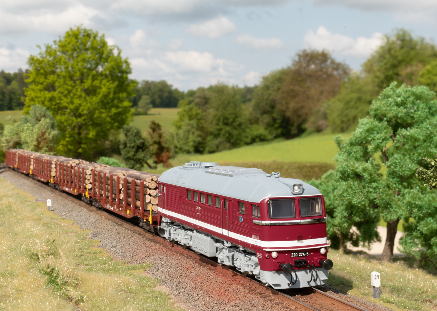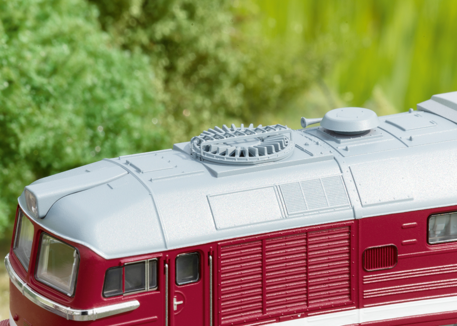Diesellokomotive Baureihe 220 - Taigatrommel oder einfach nur äWumme“Vorbild: Diesellokomotive BR 220 der Deutschen Bahn AG (DB AG), auch bekannt unter dem Spitznamen äTaigatrommel“. Mit Schalldämpfer sowjetischer Bauart, Ansauggitter mit senkrechten Lamellen und Kühlerlüfter mit Flatterlamellen. Betriebszustand 1994. Betriebsnummer 220 274.Modell: Mit Digital-Decoder mfx+ und umfangreichen Geräuschfunktionen. Geregelter Hochleistungsantrieb zentral eingebaut. Jeweils zwei Achsen in jedem Drehgestell über Kardan angetrieben. Haftreifen. Fahrtrichtungsabhängig wechselndes Dreilicht-Spitzensignal und 2 rote Schlusslichter konventionell in Betrieb, digital schaltbar. Spitzensignal an Lokseite 2 und 1 jeweils separat digital abschaltbar. Wenn Spitzensignal an beiden Lokseiten abgeschaltet ist, dann beidseitig Funktion des Doppel-A-Lichts. Führerstandbeleuchtung mit der Fahrtrichtung wechselnd, digital schaltbar. Maschinenraumbeleuchtung digital schaltbar. Beleuchtung mit wartungsfreien warmweißen und roten Leuchtdioden (LED). Seitlich angesetzte Griffstangen aus Metall. Frontschürzen gegen geschlossene Frontschürzen austauschbar. Das DB AG Logo liegt als Schiebebild bei. Länge über Puffer ca. 20,2 cm.Ein passendes Wagen-Set finden Sie im Märklin H0-Sortiment unter der Artikelnummer 47154.Dieses Modell finden Sie in Gleichstromausführung im Trix H0-Sortiment unter der Artikelnummer 25201.