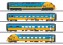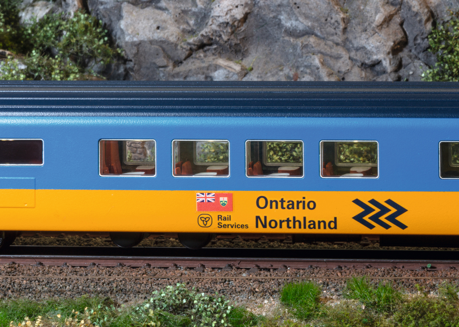 Vorbild: Dieseltriebzug "Northlander" der Ontario Northland Railway (ONR), Kanada (ehemaliger Dieseltriebzug RAm TEE). 4-teilige Garnitur in himmelblau/gelber Grundfarbgebung. 1 Motorwagen, 1 Abteilwagen, 1 Speisewagen, 1 Großraumwagen mit Steuerabteil. Dieseltriebzug-Nummer 1981. Betriebszustand 1980er-Jahre.