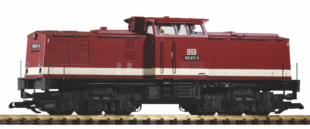 Attraktive Bedruckungsvariante der Schmalspur-Diesellok BR 199 im Design der HSB in der Epoche V.
