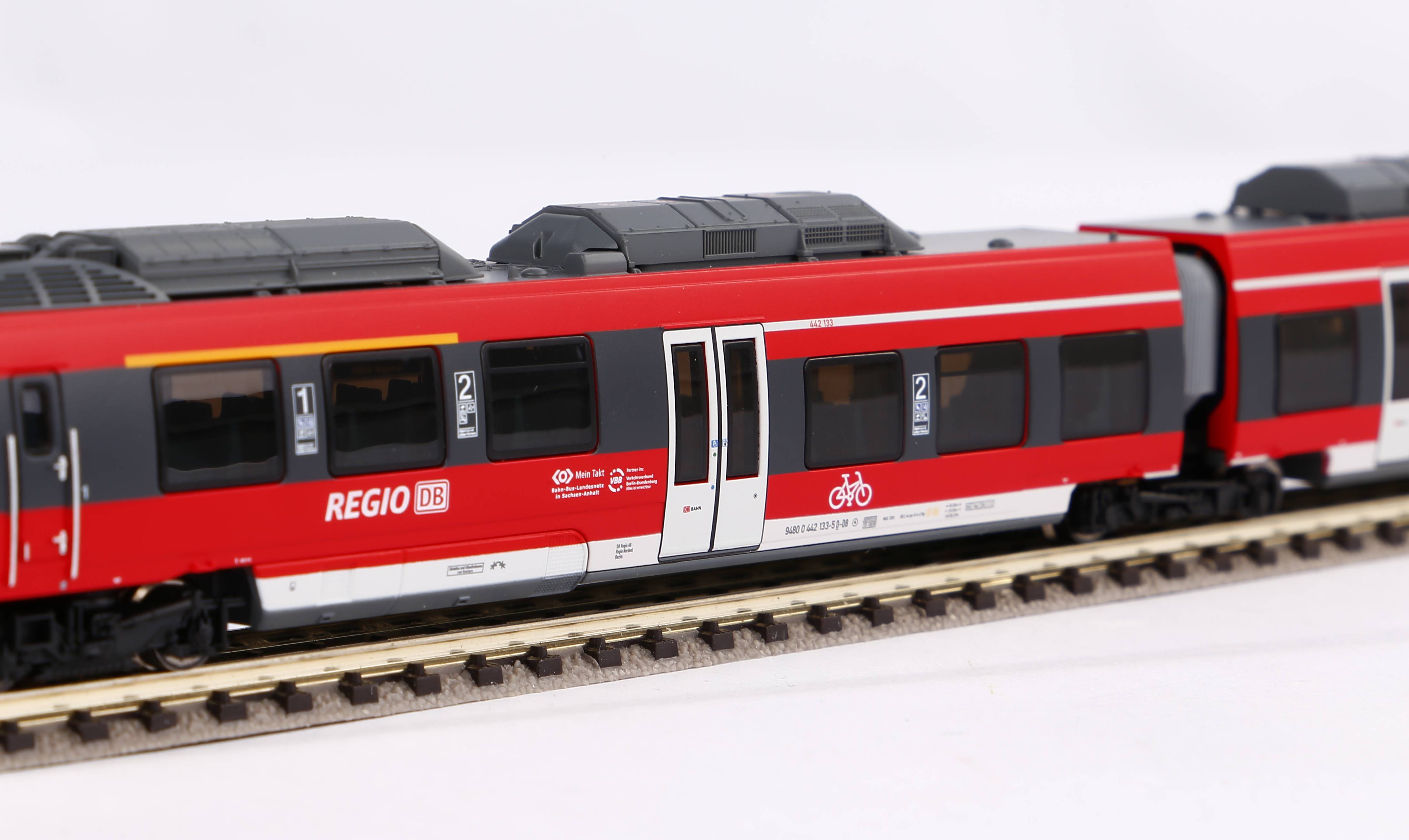 Mit dem Elektrotriebwagen BR 442 'Talent 2' bietet PIKO einen hochmodernen, elektrischen Triebwagenzug an, der seit 2011 im Regionalverkehr in vielen Teilen Deutschlands eingesetzt wird. Um die hohe Attraktivität des Vorbilds wiederzugeben, wurden im Modellkeinerlei Kompromisse zugelassen. Ob die futuristische Form der Triebzug-Köpfe, die zahlreichen, extra angesetzten Details, die separateingesetzten Fenster, die Inneneinrichtung oder die auf dem Dach konzentrierte Elektroausrüstung – das Talent-Modell von PIKO gibt das Vorbild exakt wieder. Die inneren Werte stehen dem äußerlichen Erscheinungsbild nicht nach. Das Antriebsmoment wird von jeweils einem Motor in den Endwagen über einen Kardanwellenantrieb auf die Radsätze übertragen, was dem Triebwagenzug bei rasanter Laufkultur angenehm leise Fahrgeräusche sichert.