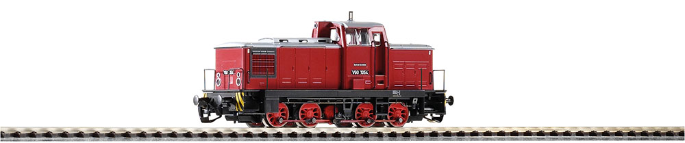 Formneuheit 2015. Diesellok V60.10 der DR. Mit der neuen, dieselhydraulischen Lokomotive war eine ideale Rangiermaschine geglückt, die sich auch vor Nahgüterzügen und auf Nebenbahnen bewähren sollte. Das noch nicht optimal gestaltete Führerhaus sowie Korrekturen am Fahrzeugteil führten zur Entwicklung der Nachfolgebaureihe V 60.12. Insgesamt bewährte sich jedoch die V 60.10, sodass die letzten Exemplare der Deutschen Reichsbahn erst 1990 ausgemustert wurden. Einige private Eisenbahnverkehrs-unternehmen haben die Loks bis heute im Einsatz. Das Modell hat das kleine Führerhaus mit dem Spitzenlicht, viele einzeln angesetzte Teile, Metall Kuppelstangen, Digital- und Soundnachrüstung vorbereitet.