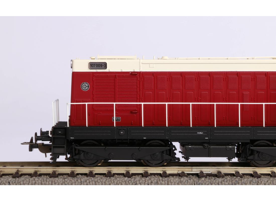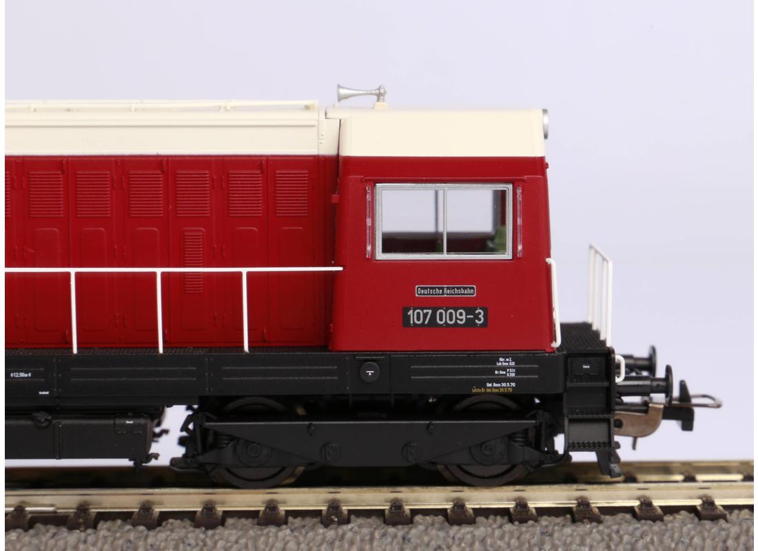 Mit der Neukonstruktion der V 75 erfüllt sich der Wunsch vieler Modellbahner nach einem zeitgemäßen Modell der Rangierlokomotive. Aus dem markanten Vorbild ist bei PIKO ein exzellentes Modell geworden, das optisch und technisch überzeugt. Die hervorragend widergegebene Gesamterscheinung wird durch die präzisen und sehr plastisch wirkenden Gravuren am Vorbau der Lokomotive unterstrichen. Hervorragend lackiert und bedruckt schmeichelt PIKOs V 75 auch dem kritischen Modellbahner-Auge. Die Lok aus der Expert-Reihe repräsentiert auch technisch den aktuellsten Stand, so ist eine PluX22-Schnittstelle vorhanden die das Nachrüsten eines Decoders zum Kinderspiel macht. Ebenfalls vorbereitet ist der einfache Einbau eines Lautsprechers mit größtmöglicher Membranfläche. Selbstverständlich besitzt das Fahrzeug eine mit der Fahrtrichtung wechselnde LED-Beleuchtung in den Farben Rot und Weiß. Als Antrieb dient ein fünfpoliger Motor, dessen gleichmäßiger Lauf durch zwei gewuchtete Schwungmassen zusätzlich verfeinert wird.