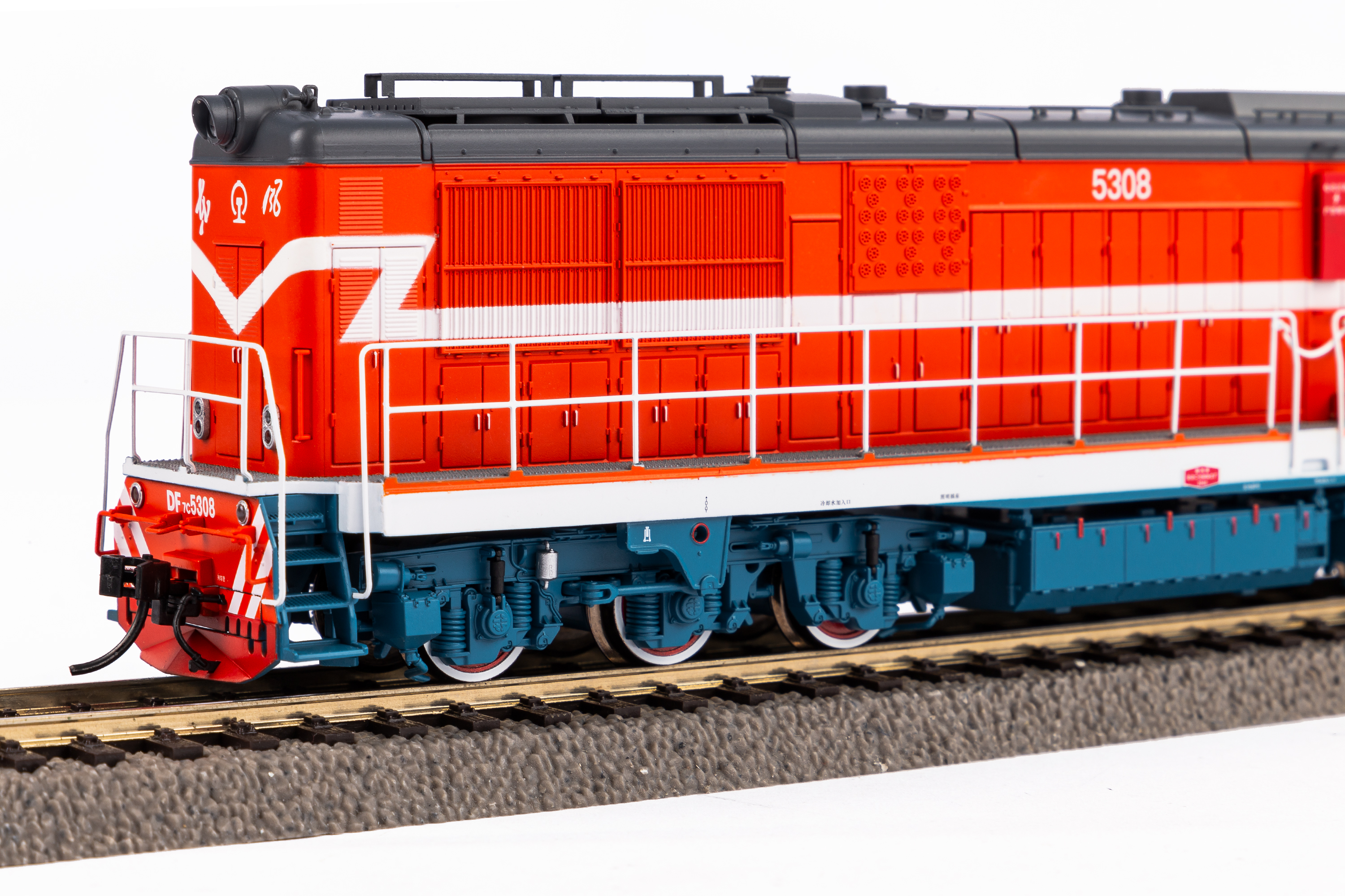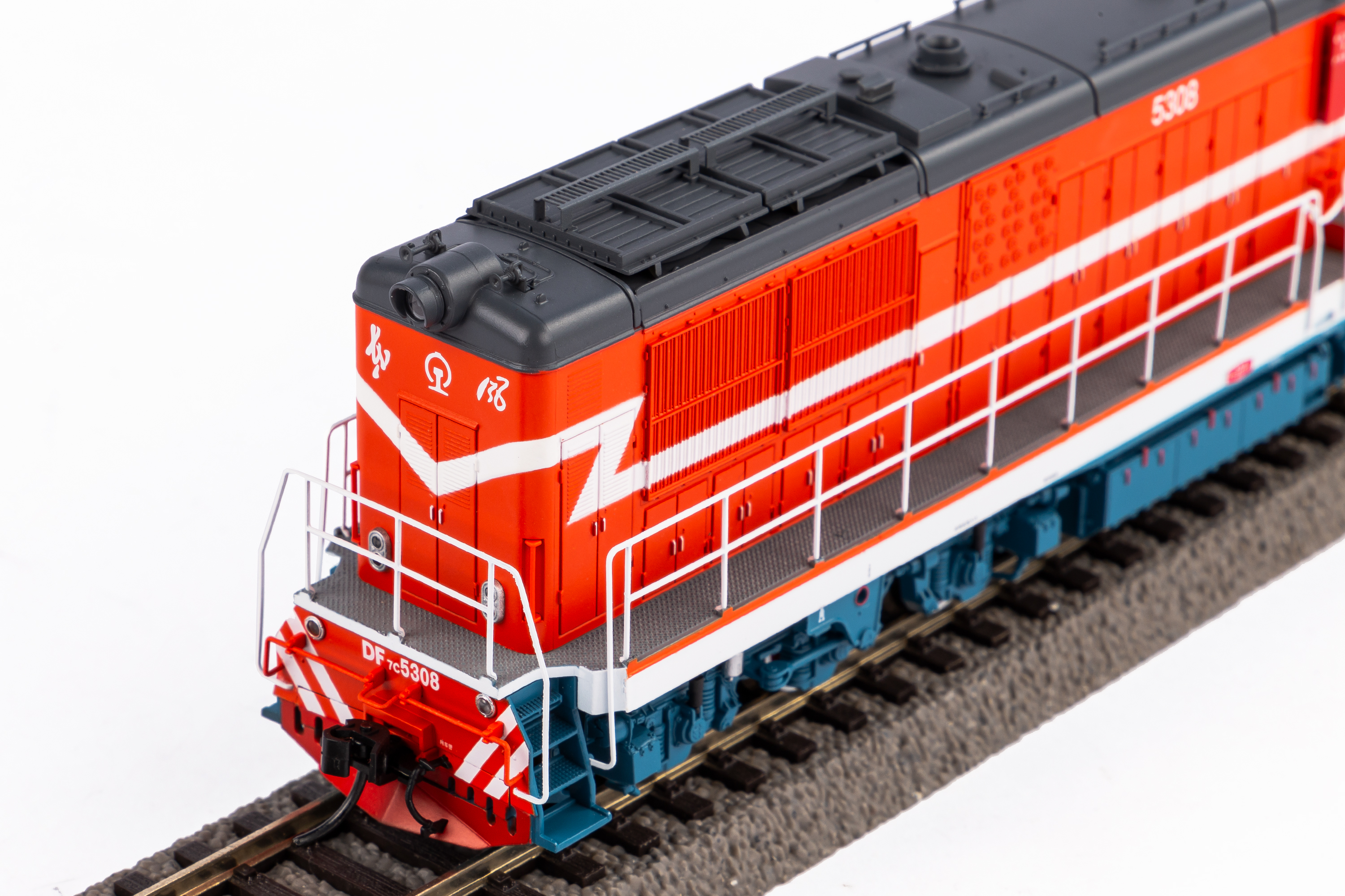 Das H0 Modell der DF7C gibt die Proportionen des Vorbildes exakt wieder und präsentiert sich in einer originalgetreuen Lackierung und Bedruckung. Das präzise nachgebildete Gehäuse mit den Handstangen und die fein gravierten Drehgestelle überzeugen mit vielen angesetzten Details. Die geätzten Geländer sind ebenso filigran wie stabil ausgeführt. Der schwere Zinkdruckgussrahmen verleiht dem Modell im Zusammenspiel mit einem starken fünfpoligen Motor ausgezeichnete Fahreigenschaften. Die Beleuchtung erfolgt durch LEDs, die Führerhaus- und Triebwerkbeleuchtung sind digital schaltbar. Das AC Modell der DF7C von PIKO ist bereits ab Werk mit einem passenden PluX22 Decoder ausgerüstet.