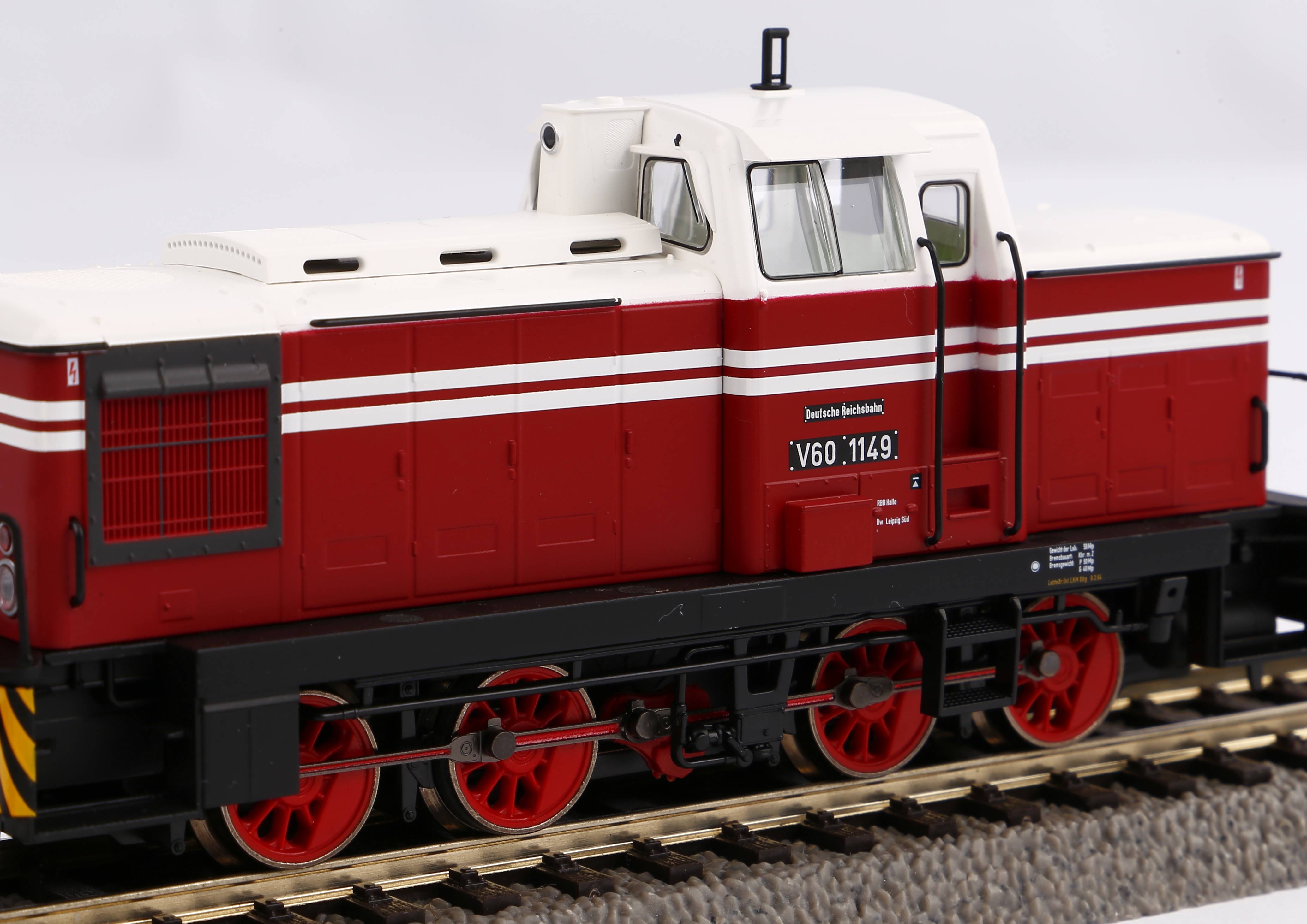 Das Modell der PIKO V 60 überzeugt mit einem robusten und funktionssicheren konstruierten Grundaufbau. Der schwere, aus Zinkdruckguss gefertigte Rahmen sorgt mit dem Schwungmassenmotor für präzise regelbare Laufeigenschaften. Alle vier Achsen sind angetrieben. Die Stromabnahme erfolgt von allen acht Rädern, von denen zwei mit Haftreifen versehen wurden. Die erste und dritte Achse besitzen Spiralfederungen zum Andruck der Räder an das Gleis. Das fein detaillierte Fahrwerk weist filigrane Radsätze, exakt gestaltete Blindwellen-Gegengewichte und Treib- bzw. Kuppelstange aus Metall auf. Als Standardmerkmale der PIKO-Expert-Linie verfügt das Modell über Kurzkupplungskinematiken, eine Digitalschnittstelle und die mit der Fahrtrichtung wechselnde Beleuchtung weiß / rot. Für eine Nachrüstung mit Decoder und Sound vorbereitet. Druckvariante der BR V 60 der Deutschen Reichsbahn aus Epoche III.